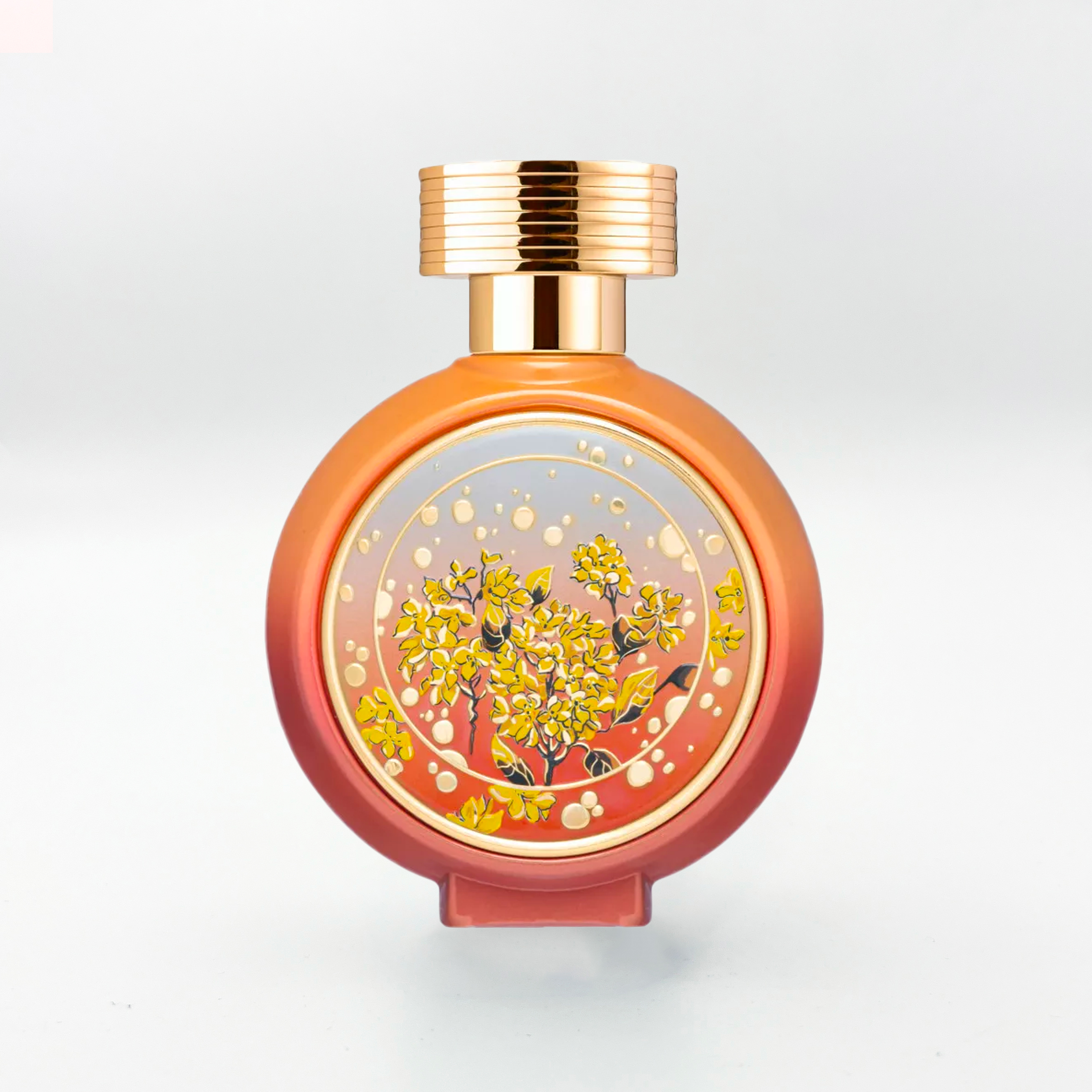 Открытие звучит ярко и солнечно: османтус и бергамот усиливают сочность абрикоса, добавляя золотистую цветочную глубину. В сердце абсолют розы соединяется с насыщенным удом и кожаным аккордом, формируя плотное, слегка провокационное звучание. База раскрывается бархатистым мускусом, сливочной ванилью и акцентом коричневого сахара, создавая тёплый, гурманский и притягательный след.